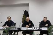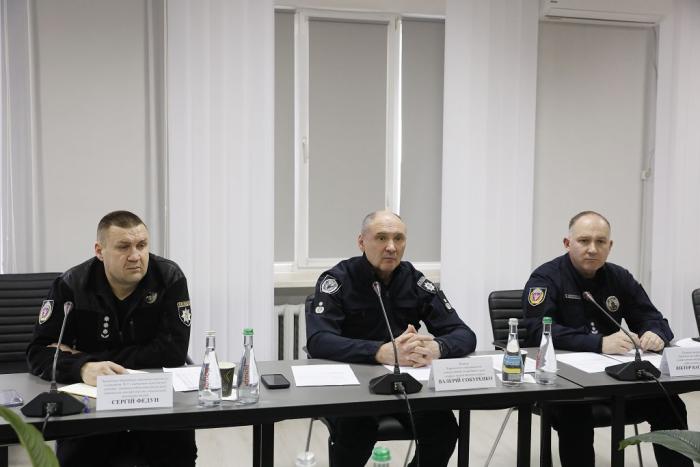 Ректор, генерал поліції третього рангу Валерій СОКУРЕНКО, перший проректор, підполковник поліції Віктор ВАСИЛЕНКО і заступник директора з навчально-методичної роботи інституту післядипломної освіти та заочного навчання, полковник поліції Сергій ФЕДУН обговорили з представниками ФПСУ пріоритетні напрями університету в забезпеченні освітнього процесу для поліцейських офіцерів громад і здобувачів вищої освіти.
