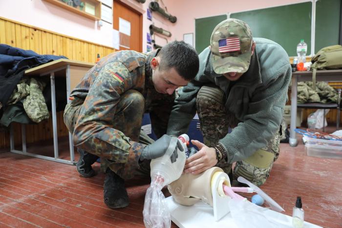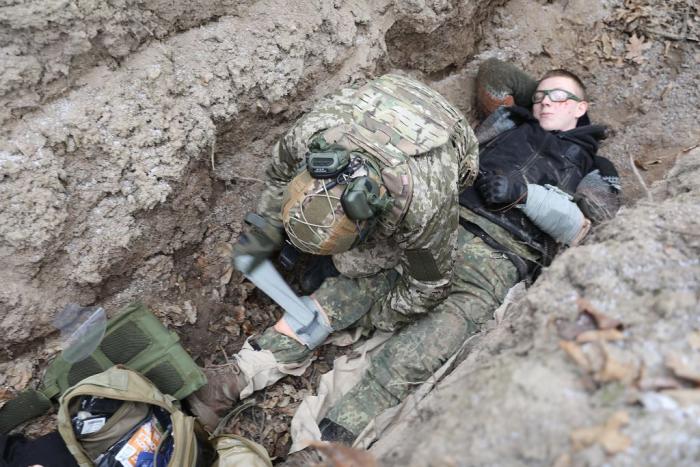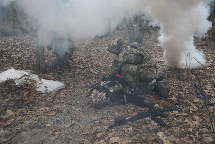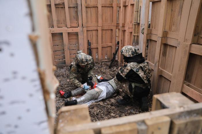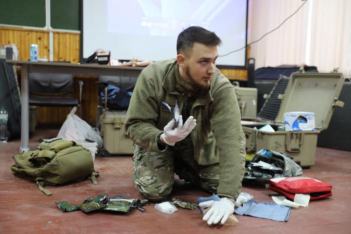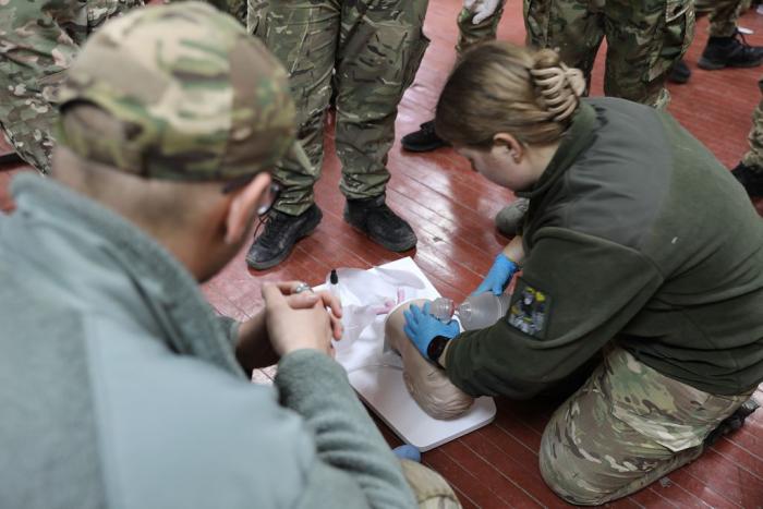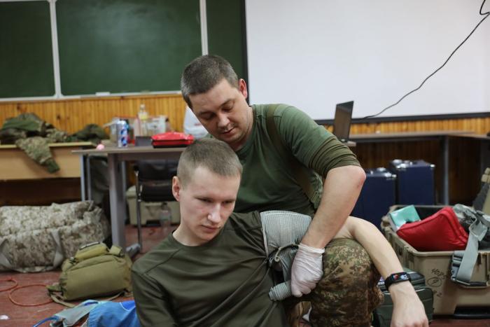 Учасники навчального практико-теоретичного тренінгу під керівництвом ветеранів бойових дій – сертифікованих інструкторів з тактичної медицини – продовжують активно працювати над питаннями надання само- та взаємодопомоги пораненим на догоспітальному етапі.