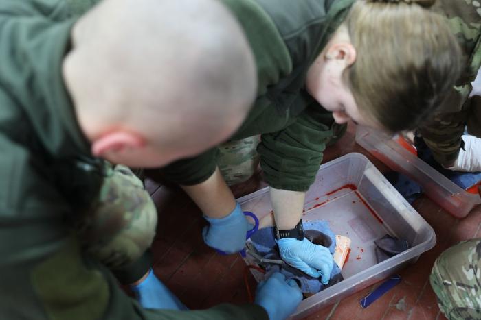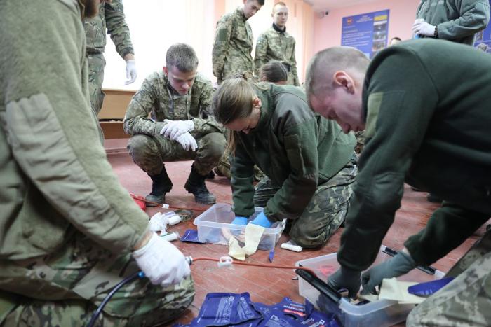 Курсанти вишу навчаються визначати шокові стани через втрату крові, розглядають алгоритм M.A.R.C.H., відпрацьовують вміння самостійно зупиняти масивну кровотечу (самодопомога) та виконувати рятувальні заходи у ролі рятівника (для пораненого). Вони також відпрацьовують навички забезпечення прохідності дихальних шляхів і вивчають ефективні методи порятунку у разі уламкових уражень, переломів, забоїв і опіків.
