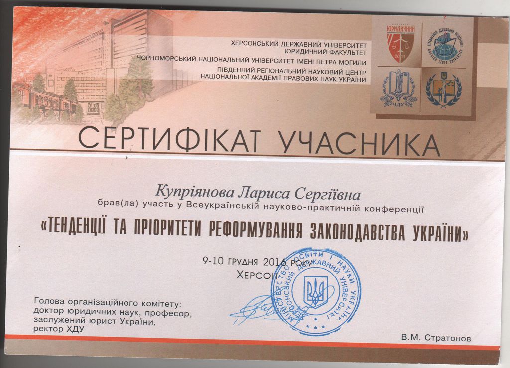 У м. Краків разом із куратором, професором Даріушем Адамеком, розробляла тему «Патоморфологічні особливості будови плаценти при кримінальному аборті». За темою підготовлена та направлена для публікації наукова стаття. Для розкриття теми представник ХНУВС спілкувалась з судовими медиками кафедри судової медицини Ягелонського університету. Завдяки чому відбулося наукове співробітництво кафедри патоморфології та кафедри судової медицини, була запланована спільна тема для проведення досліджень у майбутньому. Отримані результати досліджень представлені в тезах конференції і направлені для опублікування на конференції судових медиків, яка відбудеться в м. Одеса 14–17 червня 2017 р. Професори кафедри судової медицини Ягелонського університету виявили бажання виступити на конференції в якості доповідачів. Лариса Купріянова отримала рекомендаційного листа для участі в міжнародних наукових проектах від Ягелонського університету.