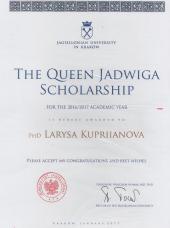 Доцент кафедри криміналістики та судової експертології факультету № 1 Харківського національного університету внутрішніх справ Лариса Купріянова в 2016 році отримала Грант Фонду Королеви Ядвіги на проведення спеціальних досліджень на кафедрі патоморфології Ягелонського університету (Краків, Польща). Слід зазначити, що метою фонду є підтримка студентів аспірантури і наукових працівників, які намагаються досягти видатних досягнень в галузі наукових досліджень.