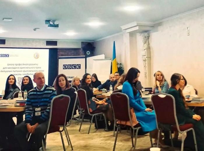 Доцентка кафедри кримінального права і кримінології ННІ №1 кандидатка юридичних наук, доцентка Ксенія ЮРТАЄВА пройшла курси підвищення кваліфікації за програмою Школи професійного розвитку для викладачів кримінального права «Актуальні питання кримінального права: сучасність і майбутнє», що відбулися в м. Вінниця. Організаторами заходу виступили Програма підтримки ОБСЄ для України і Національний юридичний університет імені Ярослава Мудрого. Викладачі Школи – члени Робочої групи з питань розвитку кримінального права – провели заняття щодо принципових відмінностей проєкту нового Кримінального кодексу України від чинного, особливостей кримінально-правової кваліфікації та призначення покарання за проєктом нового Кримінального кодексу України. Під час інтерактивних тренінгів учасники курсу долучилися до обговорення актуальних питань кваліфікації окремих кримінальних правопорушень, зокрема: обходу процедури закупівлі, корупційних і пов’язаних з корупцією кримінальних правопорушень, кримінальних правопорушень у сфері охорони здоров’я, випадків «дружнього вогню», шопліфтингу, колабораціонізму, самовільного залишення місця служби тощо.