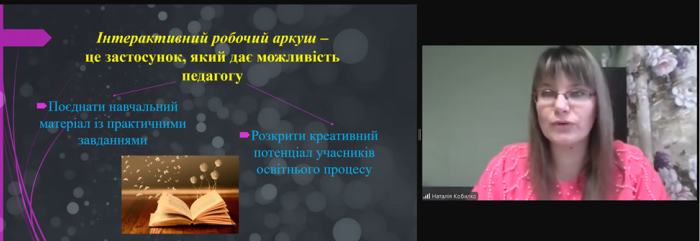 За такою темою відбувся онлайн-вебінар для викладачів, в якому виступила спікеркою доцентка кафедри гуманітарних дисциплін та українознавства, кандидатка філологічних наук Наталія КОБИЛКО. Захід був проведений на базі Навчально-методичного центру професійно-технічної освіти у Сумській області.