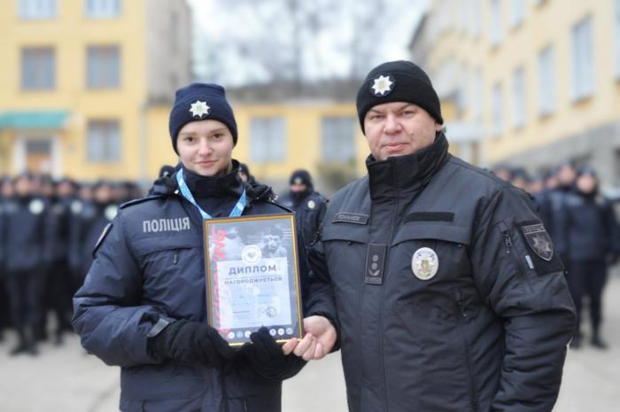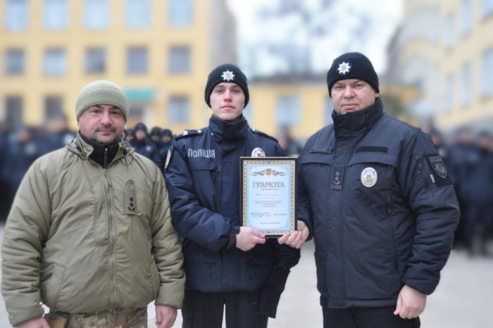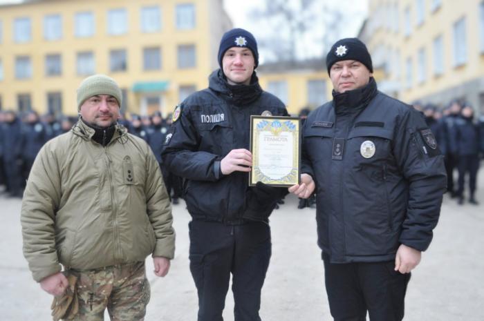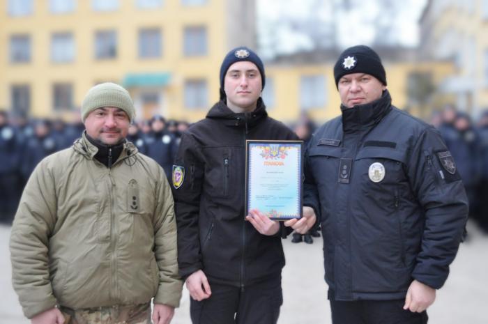 Під час шикування директор навчально-наукового інституту №1 Віталій РОМАНЮК привітав курсантів, які стали переможцями та призерами спортивних змагань. Дипломи за перемогу в відкритому чемпіонаті Хмельницької області WAKO директор вручив курсантам 2 курсу Роману САВЧУКУ та курсантці 1 курсу Єлизаветі КРАВЧЕНКО.
