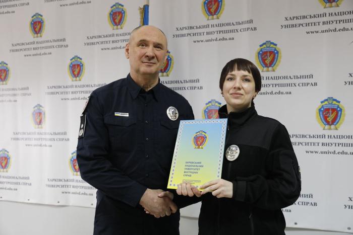 Під час заходу Грамоти від виконавчого комітету Кам’янець-Подільської міської ради вручили старшому лейтенанту поліції Оксані КРИЖАНІВСЬКІЙ та лейтенанту поліції Єгору СКУРІХІНУ за зразкове ставлення до виконання службових обовязків, значні успіхи у навчанні, сумлінне та бездоганне служіння народові України, ініціативу і наполегливість та вагомий особистий внесок у навчальний процес.