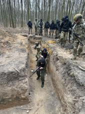 Наприкінці заняття, яке проводилося з використанням піротехнічних засобів і макетів вибухонебезпечних предметів, курсанти відпрацювали тактику дій підрозділу у ході ведення зустрічного бою з елементами тактичної медицини.
