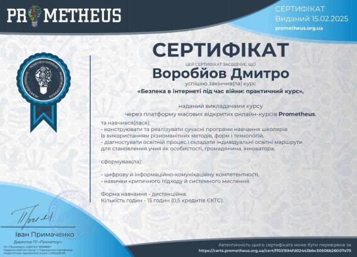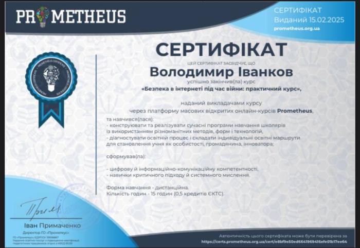 За такою темою доцентка кафедри кримінального права і кримінології ННІ №1, кураторка Тетяна ШЕВЧУК ініціювала проходження курсантами освітньої програми. Мета – сформувати вміння, необхідні для критичного сприйняття інформаційного простору, безпечного використання сучасних технологій та ефективного оперування цифровими інструментами, зокрема соцмережами. У програму увійшло опрацювання трьох модулів: «Інформаційна грамотність і безпека в інтернеті»; «Комунікація та безпечна взаємодія в цифровому суспільстві»; «Приватність і цифрове середовище»; «Потенційні ризики та інформаційна грамотність». Здобувачі освіти отримали знання та навички для забезпечення кібербезпеки, уникнення онлайн-шахрайства і збереження особистої інформації.