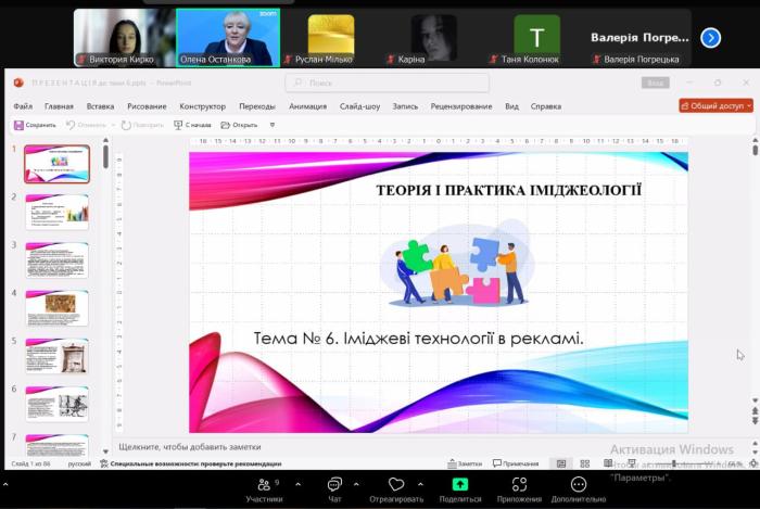 За ініціативи доцентки кафедри соціології та психології ННІ№5 Яни ПОНОМАРЕНКО для студентів-психологів 3 курсу у межах вивчення дисципліни «Теорія і практика іміджеології» лекцію на тему «Іміджеві технології в рекламі» прочитала викладачка кафедри педагогіки та психології факультету магістратури, заочного навчання та підвищення кваліфікації Харківської державної академії фізичної культури Олена ОСТАНКОВА.