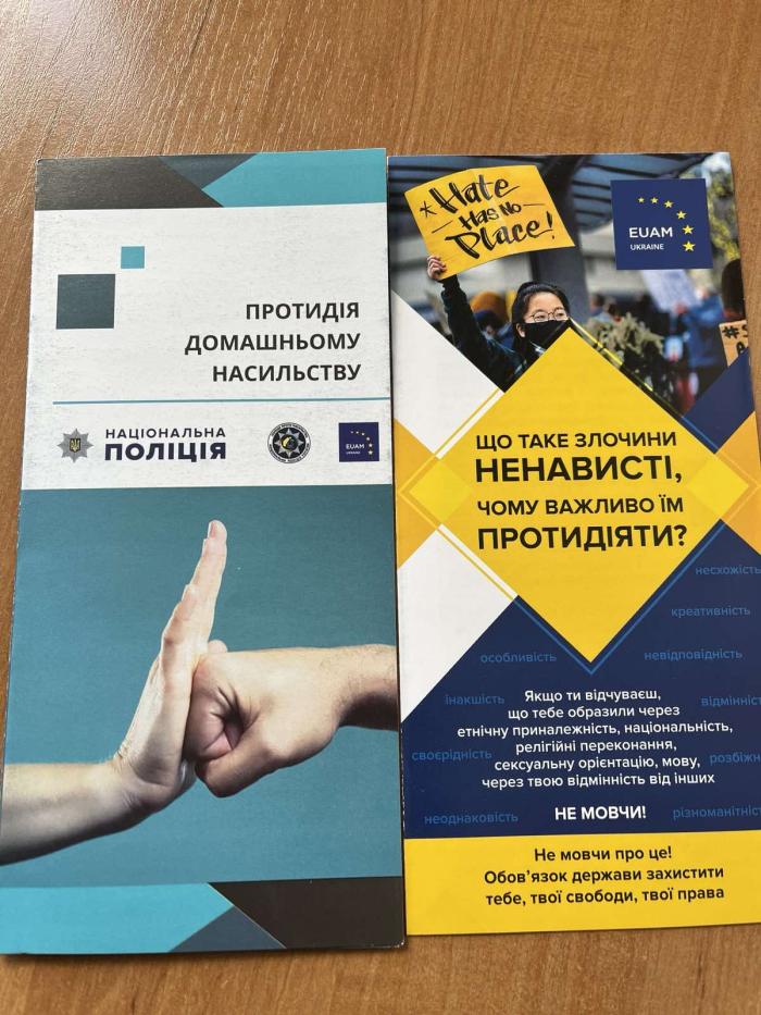 Наприкінці зустрічі здобувачі освіти отримали буклети «Що таке злочини ненависті, чому важливо їм протидіяти?», «Протидія домашньому насильству» з інформацією щодо чітких дій поліцейських у випадках домашнього насильства.