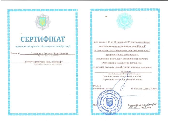 За такою темою завершив навчання науково-педагогічний склад кафедри оперативно-розшукової діяльності та розкриття злочинів ННІ №2 ХНУВС. Захід проходив на базі ОДУВС під керівництвом Департаменту освіти, науки та спорту МВС спільно з Національною поліцією України.