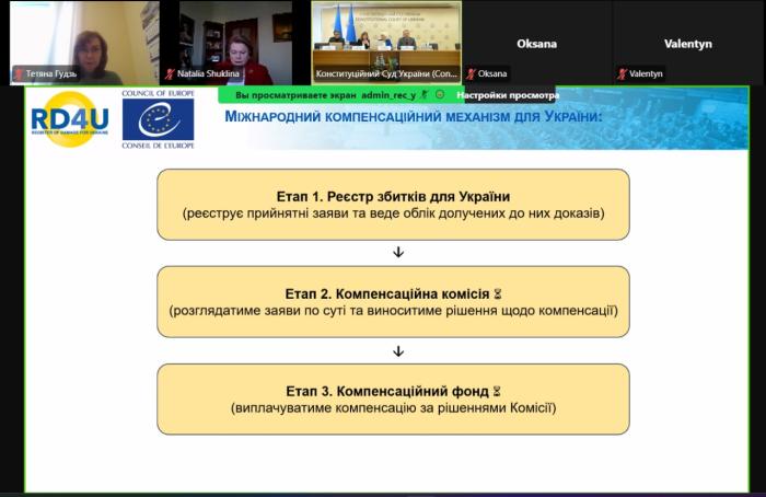 Науково-педагогічні працівники кафедри конституційного і міжнародного права та прав людини: завідувачка Тетяна ГУДЗЬ, професори Дмитро СЛИНЬКО та Андрій ВОЙЦІХОВСЬКИЙ прослухали лекцію на тему «Реєстр збитків, завданих агресією російської федерації проти України: мандат, функції та категорії заяв». Захід був організований за участі провідних експертів у галузі міжнародного права, зокрема голови Київського офісу Реєстру збитків для України, докторки юридичних наук Ганни ХРИСТОВОЇ та юридичного радника Реєстру, доктора права Ігоря КАРАМАНА. Крім того, своїми поглядами щодо правових аспектів цього важливого процесу поділилися судді КСУ.
