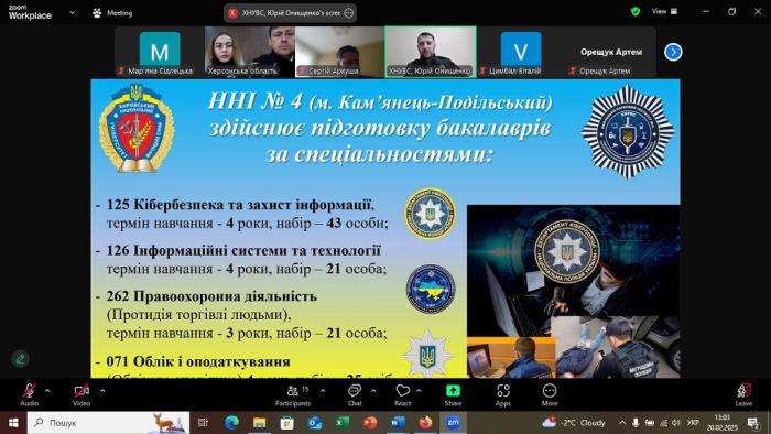 Його провели заступник директора ННІ № 4 Юрій ОНИЩЕНКО та представники Каховського районного відділу поліції ГУНП в Херсонській області. Під час зустрічі старшокласники Херсонщини дізналися про перспективи навчання у Харківському національному університеті внутрішніх справ, особливості підготовки майбутніх правоохоронців та перспективи працевлаштування. Представники поліції поділилися досвідом, розповіли про актуальність і важливість професії правоохоронця та відповіли на численні запитання молоді.