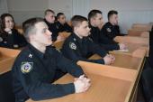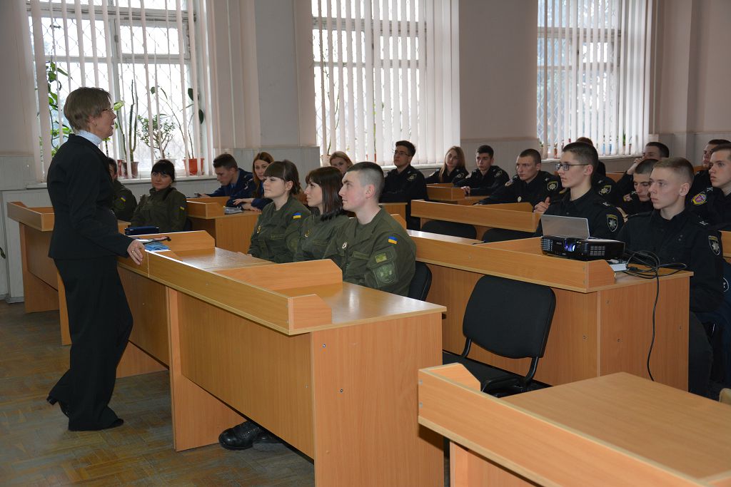 Курсанти подивилися відеосюжети про роль українських поліцейських підрозділів у підтриманні миру і безпеки, захисті прав цивільного населення. Валентина Почуєва показала фото з миротворчих місій та деякі особисті речі: шеврони, емблеми, значки і медалі ООН «За службу миру».
