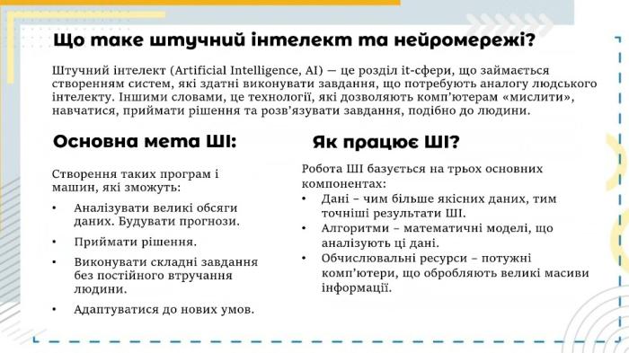 Протягом триденного тренінгу учасники проаналізували вплив сучасних цифрових технологій на освітній процес, розглянули переваги й недоліки різноманітних діджитал-інстументів, на практиці дослідили можливості використання штучного інтелекту під час викладання курсів загального й професійного спрямування української мови. Окрему увагу приділили програмам для якісної комунікації в чат-ботах; сервісам для створення сучасних форм презентацій, тестів, планів лекційних і семінарських занять; інструментам для якісної генерації візуального контенту та роботи над творчими проєктами; антиплагіатним системам для перевірки й оцінювання наукових робіт; адаптивним програмам, які допомагають підлаштовувати навчальні матеріали під рівень підготовки здобувачів освіти; платформам для дистанційного навчання тощо. Після теоретичних занять усі учасники тренінгу пройшли контрольне тестування, за результатами якого отримають сертифікати.