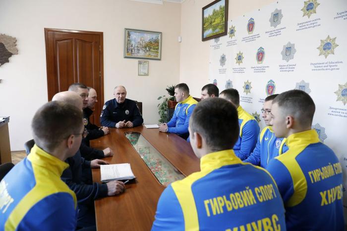 Зі здобувачами освіти, які у складі збірної команди візьмуть участь у чемпіонаті з гирьового спорту серед курсантів закладів вищої освіти системи МВС України, поспілкувався ректор, генерал поліції третього рангу Валерій СОКУРЕНКО. Він побажав курсантам успіхів, витривалості та перемог у чемпіонаті. Валерій Васильович наголосив на важливості спортивного духу, дисципліни та командної роботи, що є необхідними для досягнення високих результатів не лише в спорті, а й у професійній діяльності майбутніх правоохоронців.