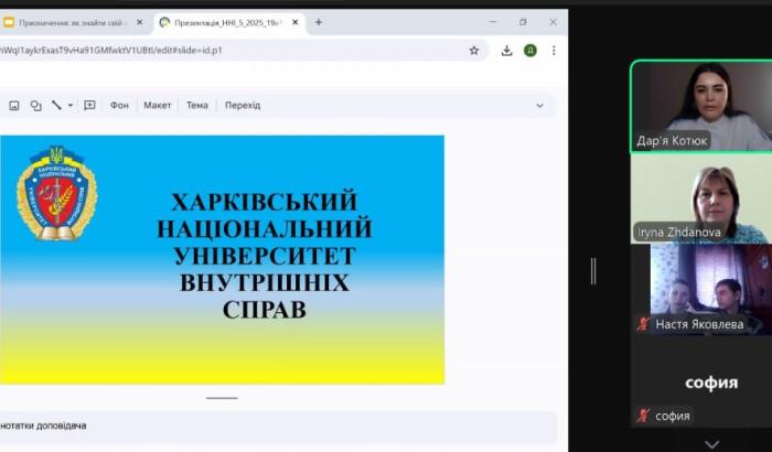 Доцентка кафедри соціології та психології Ірина ЖДАНОВА та здобувачка вищої освіти другого рівня Дар’я КОТЮК провели зустріч із учнями 10 та 11 класів КЗ «Краснопавлівський ліцей» Лозівської міської ради Харківської області. Вони розповіли про Харківський національний університет внутрішніх справ, спеціальності, за якими готують фахівців, особливості вступу та навчання у виші, відповіли на запитання старшокласників. Під час заходу представниці університету провели практичне заняття на тему «Призначення: як знайти свій шлях», яке допомогло молоді визначити свої професійні вподобання, сильні сторони та зіставити їх із потребами суспільства.