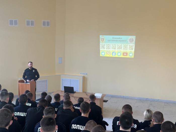 У презентаційному форматі курсанти отримали QR-коди (посилання) на офіційні інформаційні ресурси Харківського національного університету внутрішніх справ, а також на Telegram-канал Департаменту кіберполіції Національної поліції України «Брама» – ефективний інструмент протидії російській пропаганді в інтернеті.