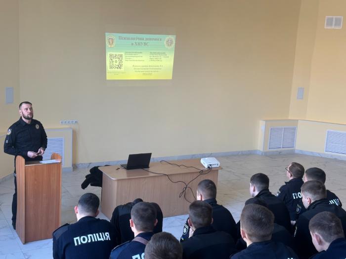 Психологиня відділення психологічного забезпечення відділу кадрового забезпечення Єлизавета ПОСНА розповіла про доступність психологічної допомоги та підтримки для курсантів у вирішенні різних життєвих ситуацій і проблем. Вона підкреслила, що здобувачі вищої освіти можуть звертатися до фахівців відділення як особисто, так і в онлайн-форматі, гарантуючи повну конфіденційність звернень.
