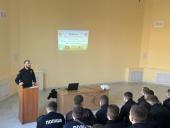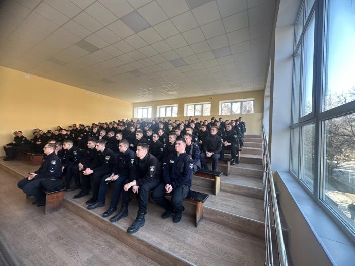 Юрій ОНИЩЕНКО надав курсантам рекомендації щодо дотримання етичних норм поведінки поліцейських, правил безпечної поведінки в інтернеті в умовах правового режиму воєнного стану, а також мотивував їх вести здоровий спосіб життя та займатися спортом.
