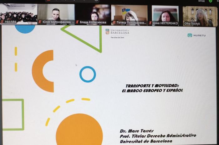 На лекції розглядалися питання правового регулювання сталої міської мобільності в Іспанії. Спікерами заходу виступили доктор, професор адміністративного права Університету Барселони Марк ТАРРЕС ВІВЕС та доктор юридичних наук, запрошений професор Ольга ТИЛЬЧИК. Цей вебінар став першим у серії вебінарів, що сприятимуть вдосконаленню академічного та навчального досвіду студентів і дослідників з Україні.
