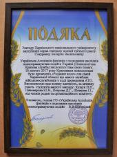 За активну участь курсантів факультету № 3 Харківського національного університету внутрішніх справ Ірини Шевцової, Діани Петрової, Вікторії Пивоварової та Ніни Кущук у заході «Родинне коло» для сімей загиблих під час проведення АТО військовослужбовців керівництву навчального закладу оголошена Подяка Асоціації фахівців з подолання наслідків психотравмуючих подій в Україні (Психологічної Кризової служби).
