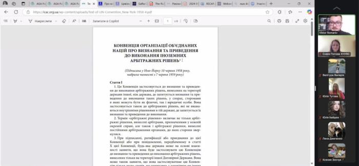 Старша викладачка кафедри цивільного права та процесу ННІ №5 Софія ПОПОВА та викладачка цієї кафедри Юлія ТУТОВА запросили юриста юридичної компанії AGA Partners Віктора РОМАНІВА для проведення бінарного заняття на тему «Міжнародний комерційний арбітраж».