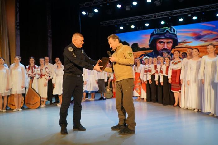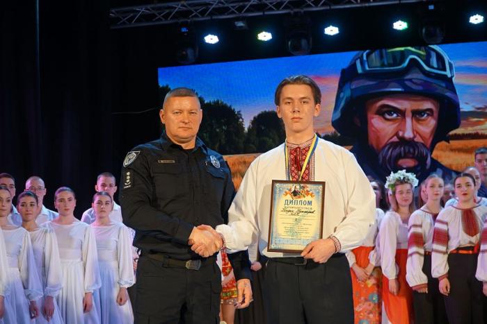 За вагомий внесок у національно-патріотичне виховання здобувачів вищої освіти університету, популяризацію української культури та традицій, сприяння творчому й інтелектуальному розвитку молодого покоління як запоруки успішного майбутнього української нації Подяку Харківського національного університету внутрішніх справ проректор університету вручив: