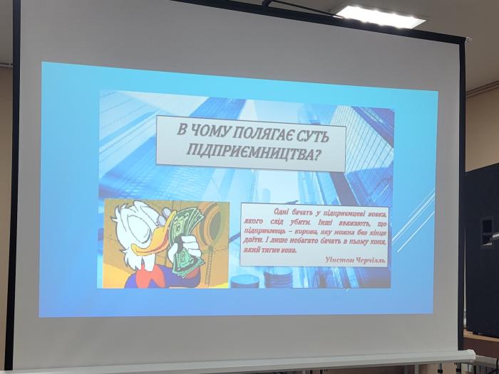 Вікторія ФУРСА також ознайомила ліцеїстів з основами підприємницької діяльності та її значенням для суспільства. Елла ТВЕРДОХЛІБ розповіла молоді про умови вступу до Харківського національного університету внутрішніх справ і наголосила на можливості здобути освіту, яка є запорукою захисту законних прав та інтересів.