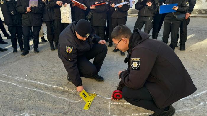 На підставі отриманих знань здобувачі вищої освіти самостійно провели огляд місця події імітованої дорожньо-транспортної пригоди зі складанням протоколу огляду місця події та схеми до нього. По завершенню навчань представники слідчого управління оцінили результати роботи курсантів.