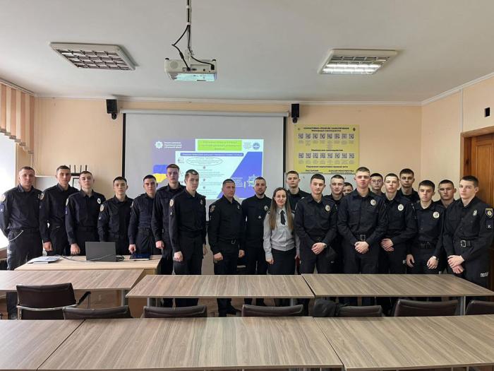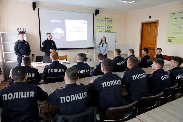 Співробітники поліції розповіли про напрямки та специфіку роботи їхнього підрозділу, а також продемонстрували презентацію та відеосюжети щодо сучасних засобів забезпечення ефективності роботи у підрозділах поліції: дистанційне спостереження, опитування поліграфом, портативні відеореєстратори VB 400, прилади голосового супроводження порядку отримання та здачі вогнепальної зброї, система Custody Records, домофони для з'єднання громадян із черговим нарядом тощо. Також вони звернули особливу увагу здобувачів освіти на необхідність дотримання принципу законності та забезпечення правопорядку в майбутній практичній діяльності.
