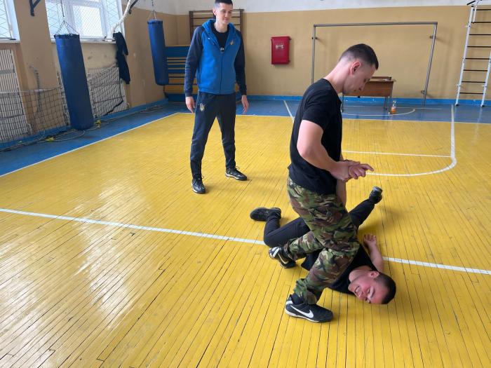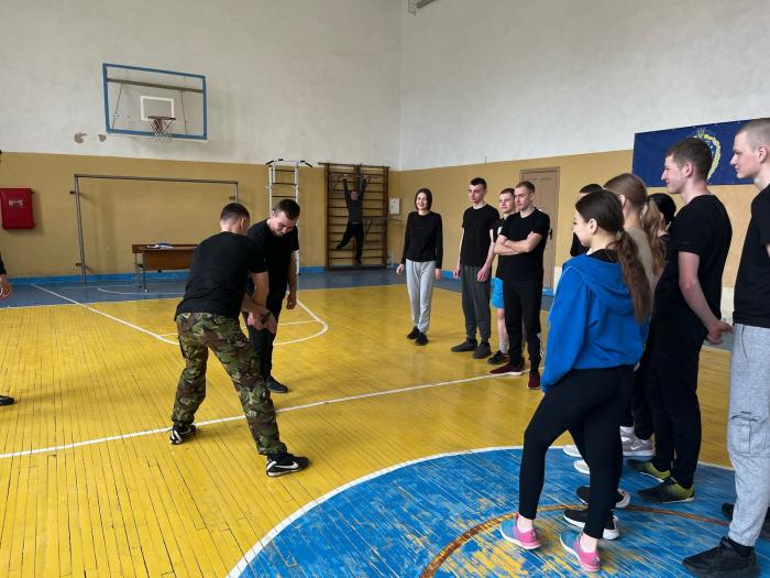 Заняття провели викладач кафедри спеціальної фізичної підготовки ННІ №2 Олександр ШЕПЕЛЕВ і старший дільничний відділення поліції №3 Полтавського РУП ГУНП у Полтавській області Владислав МИХ.