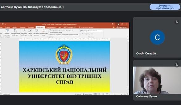 За ініціативи завідувачки кафедри інформаційних систем та технологій ННІ №4 Лідії КАЛЄНІЧЕНКО професорка цієї ж кафедри Світлана ЛУЧИК провела профорієнтаційну онлайн-зустріч з учнями 11 класів Ужгородського ліцею №8 Ужгородської міської ради Закарпатської області. Професорка ознайомила старшокласників зі спеціальностями та освітніми програмами, за якими здійснюється підготовка фахівців у Харківському національному університеті внутрішніх справ. Вона також розповіла ліцеїстам про умови навчання у поліцейському виші, можливості для курсантів і студентів займатися науковою, спортивною, культурно-виховною діяльністю, а також про гарантоване працевлаштування випускників університету.