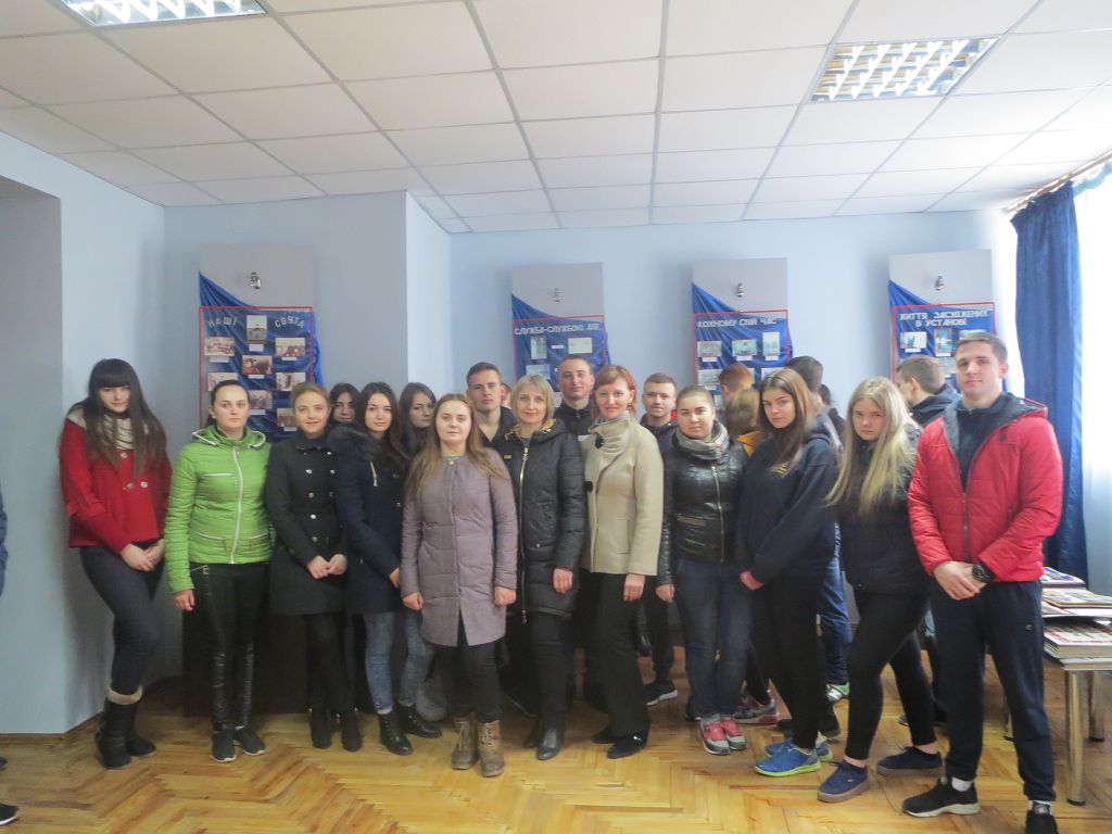 Юнаки та дівчата зустрілися з начальником Качанівської виправної колонії № 54 полковником внутрішньої служби Андрієм Явтушенком. Працівники установи супроводжували студентів протягом заняття. Молодь побачила умови проживання засуджених, їдальню, підсобне господарство, спортивну й актову зали, бібліотеку, кімнату релаксації. Студенти також відвідали швейну фабрику, яка дає можливість отримати додаткові кошти для подальшого розвитку колонії, музей колонії, зимовий сад, капличку, навчальний корпус для отримання базової середньої та вищої освіти, дисциплінарний ізолятор та багато іншого.