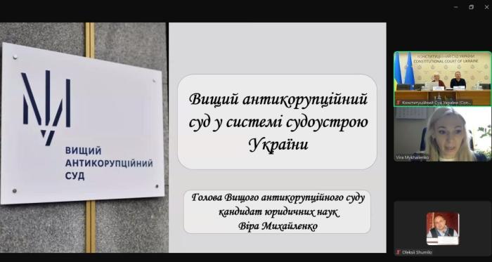 За такою темою здобувачі освіти та науково-педагогічні працівники Сумської філії ХНУВС прослухали лекцію Голови Вищого антикорупційного суду, кандидата юридичних наук Віри МИХАЙЛЕНКО під час онлайн-заходу, організованого Конституційним Судом України.