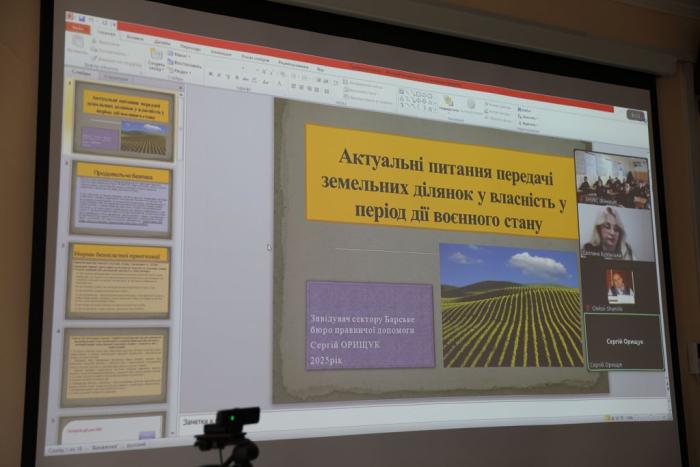Захід на тему «Актуальні питання передачі земельних ділянок у власність у період дії воєнного стану» був організований в межах співпраці Юридичної клініки Харківського національного університету внутрішніх справ у м. Вінниці, Вінницької обласної Асоціації органів місцевого самоврядування та Центрально-Західного управління надання безоплатної правничої допомоги Північного міжрегіонального центру з надання безоплатної правничої допомоги. Консультативна зустріч об'єднала посадових осіб і службовців місцевого самоврядування Вінниччини, серед яких голови територіальних громад і районних рад, фахівці відділів і підрозділів служб територіальних громад, мешканці громад.