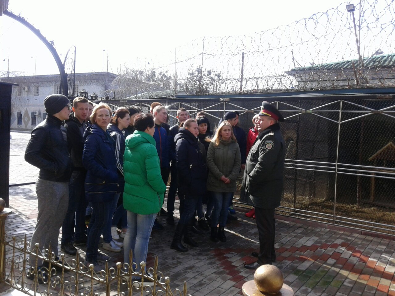 Заступник начальника установи Сергій Дмитренко разом із працівниками колонії ознайомив молодь з умовами проживання засуджених. Юнаки та дівчата оглянули відділення ресоціалізації та соціальної адаптації, гуртожитки для засуджених блочного типу, медичний і дисциплінарний ізолятор, зимовий сад та капличку.