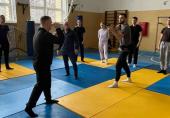 Під час бінарного заняття з дисципліни «Спеціальна фізична підготовка» курсанти ННІ №2 вдосконалили техніку захисту від атак озброєного правопорушника. Особлива увага була приділена техніці захисту від ударів ножем, обеззброєнню та затриманню злочинця.