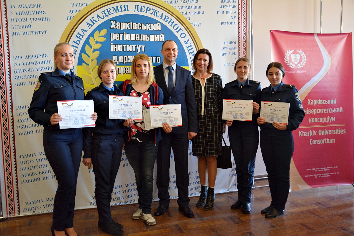 У Харківському регіональному інституті державного управління Національної академії державного управління при Президентові України відбулося вручення сертифікатів студентам чотирьох провідних вищих навчальних закладів Харкова, які взяли участь у проекті Консорціуму молодих психологів Харківщини. Реалізація проекту відбувалася за підтримки німецького фонду GIZ та за сприянням Харківської обласної державної адміністрації. Із отриманням сертифікатів учасників поздоровили заступник голови – керівник апарату Харківської обласної державної адміністрації Анатолій Бабічев, президент Харківського університетського консорціуму Людмила Бєлова, ректор Харківського національного університету ім. В. Н. Каразіна Віль Бакіров та інші почесні гості.