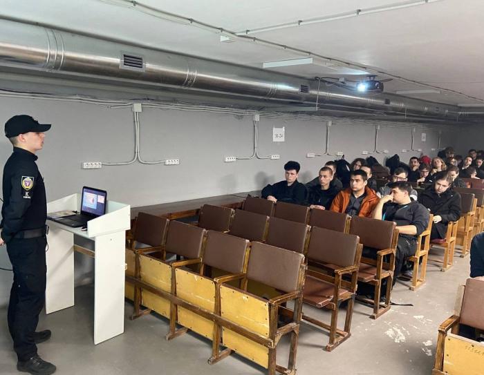 Старший викладач кафедри юридичних дисциплін Сумської філії ХНУВС Андрій СЯДРИСТИЙ разом із курсантами першого курсу Даниілом ІВАНЧИХІНИМ і Максимом ТИМЧЕНКОМ провели зустріч із здобувачами освіти Вищого професійного училища №7 міста Кременчук.