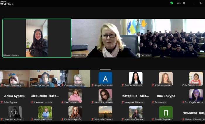 У Сумській філії ХНУВС відбулася зустріч здобувачів вищої освіти з інспекторкою сектору зв’язків з громадськістю Управління патрульної поліції в Сумській області Мариною ГОРЬКОВСЬКОЮ. У заході також взяли участь провідна фахівчиня групи виховної роботи Ганна МІТІТЄЛ, заступниця начальника курсу Олена ПОДОЙНІК, куратори навчальних груп Тетяна ПОНОМАРЕНКО, Олена ЛУК’ЯНИХІНА, Світлана ВИГАНЯЙЛО, Андрій СЯДРИСТИЙ та Юлія САМОЙЛОВА.