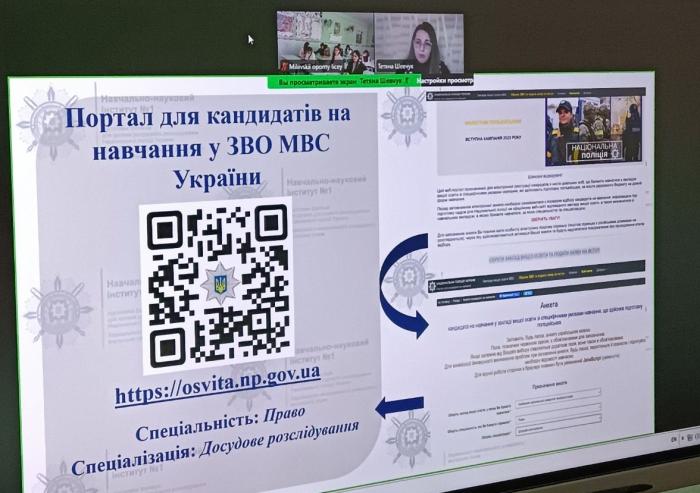 Доцентка кафедри кримінального права і кримінології ННІ №1 Тетяна ШЕВЧУК провела профорієнтаційну бесіду з учнями випускного класу Міліївського опорного ліцею ім. Дмитра Загула Вижницької міської ради Вижницького району Чернівецької області. Вона презентувала старшокласникам навчально-наукові інститути та спеціальності, за якими здійснюється підготовка фахівців, акцентувала увагу на перевагах навчання у закладах вищої освіти зі специфічними умовами навчання, які здійснюють підготовку поліцейських. Молодь отримала вичерпну інформацію щодо особливостей вступу до Харківського національного університету внутрішніх справ у 2025 році за державним замовленням і за кошти фізичних та юридичних осіб, дізналася про порядок реєстрації кандидатів на навчання на порталі: https://osvita.np.gov.ua.