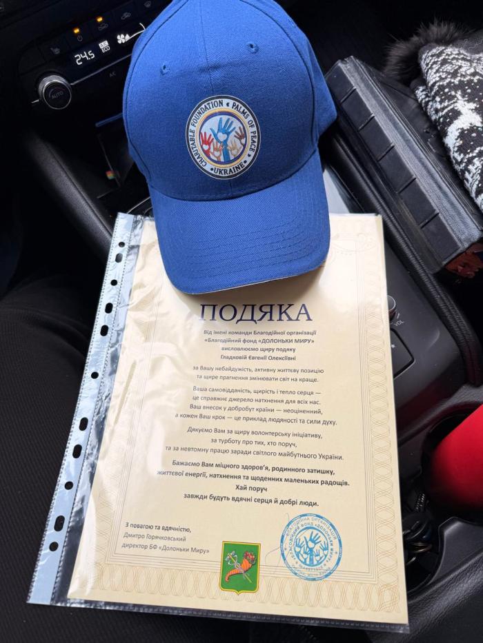 До Дня подяки волонтерам провідна наукова співробітниця науково-дослідної лабораторії соціально-психологічного супроводу та реабілітації працівників МВС ННІ №3 Євгенія ГЛАДКОВА була відзначена Подякою від директора Благодійної організації «Благодійний фонд «Долоньки миру»» Дмитра ГОРЯЧКОВСЬКОГО за небайдужість, волонтерську ініціативу, активну життєву позицію, щире прагнення змінювати світ на краще, невтомну працю заради світлого майбутнього України.