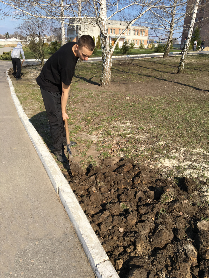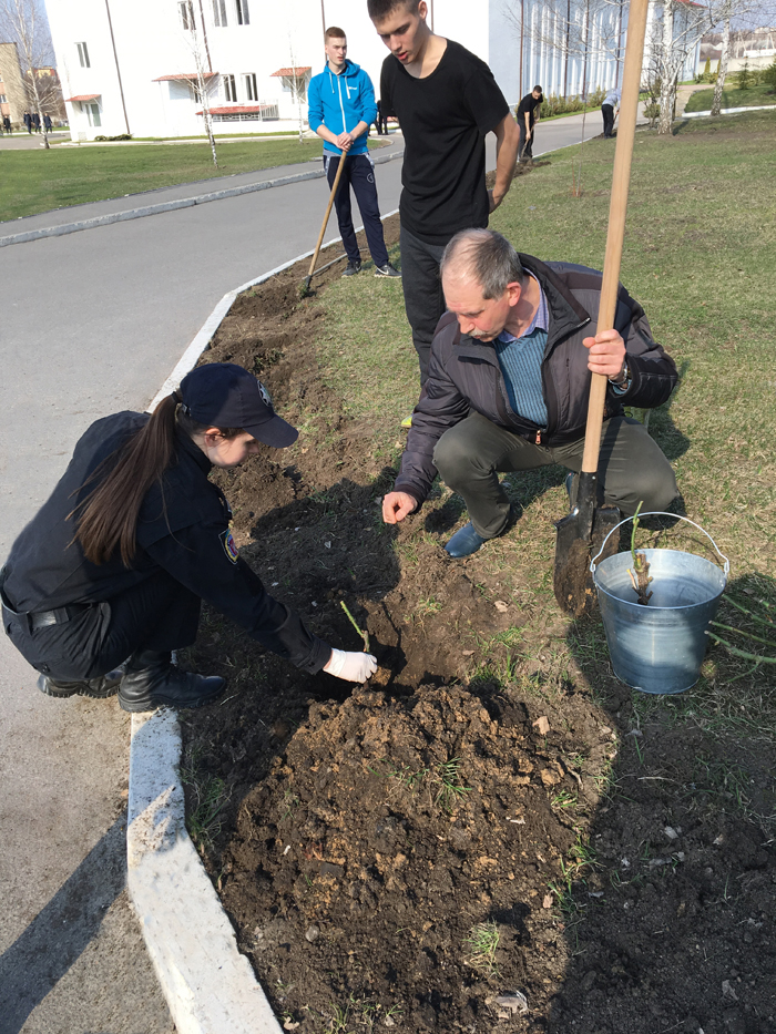 Працівники та курсанти факультету № 4 Харківського національного університету внутрішніх справ приводять у порядок територію після зими, закріплену за факультетом.