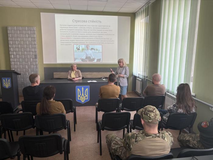 Завідувачка кафедри психології, соціології та педагогіки ННІ №3 Олена ФЕДОРЕНКО та доцентка цієї ж кафедри Оксана ЛЯСКА провели психологічний тренінг «Стресостійкість військовослужбовців» для захисників і захисниць, які повернулися із зони бойових дій.