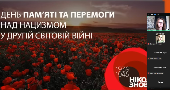 Куратори навчально-наукового інституту №5 провели кураторські години зі студентами з нагоди Дня пам’яті та перемоги над нацизмом у Другій світовій війні 1939–1945 років. Під час заходів учасники ознайомились з історичними фактами Другої світової війни, переглянули документальні матеріали, обговорили разом із кураторами події воєнних років того часу та поділилися думками щодо важливості збереження миру. Як і в минулому, український народ знову протистоїть агресору, який намагається нав’язати свою волю, зневажаючи закони міжнародного права та загальнолюдські моральні цінності. Лише єдність і рішучість здатні зупинити жорстоку війну.