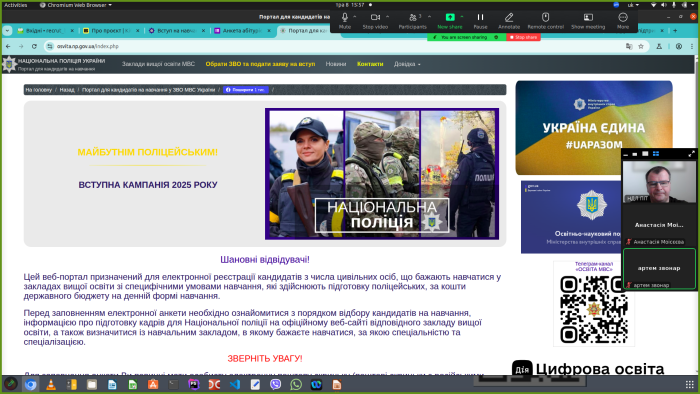 Завідувач науково-дослідної лабораторії з проблем інформаційних технологій та протидії злочинності у кіберпросторі ННІ №4 Дмитро ПАШНЄВ провів профорієнтаційний онлайн-захід для випускників закладів загальної середньої освіти Харківської області. Майбутні абітурієнти отримали унікальну можливість дізнатися більше про спеціальності, які пропонує ХНУВС, особливості освітнього процесу та перспективи кар’єрного розвитку у сфері правоохоронної діяльності та кібербезпеки. Спікер розповів про умови вступу, навчання та переваги курсантського життя в університеті.
