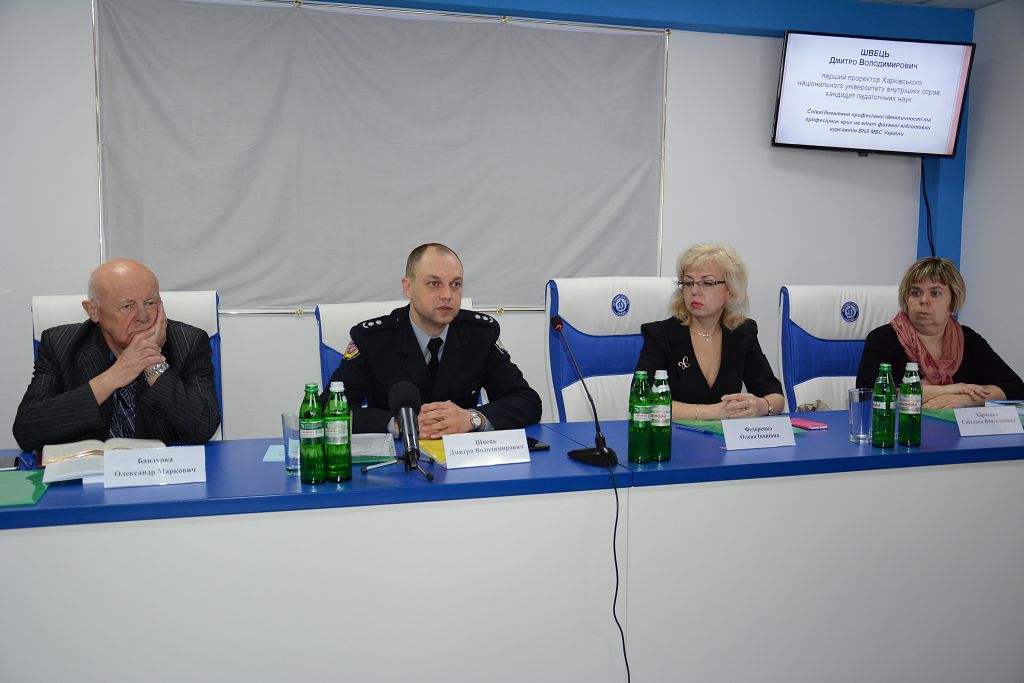 Крім психологічних та педагогічних проблем професійної освіти, піднімалися питання й національно-патріотичного виховання курсантів та студентів у вищих навчальних закладах МВС України. Їм приділила увагу у своєму виступі завідувач кафедри педагогіки та психології факультету № 3 ХНУВС доктор педагогічних наук, професор Олена Федоренко.