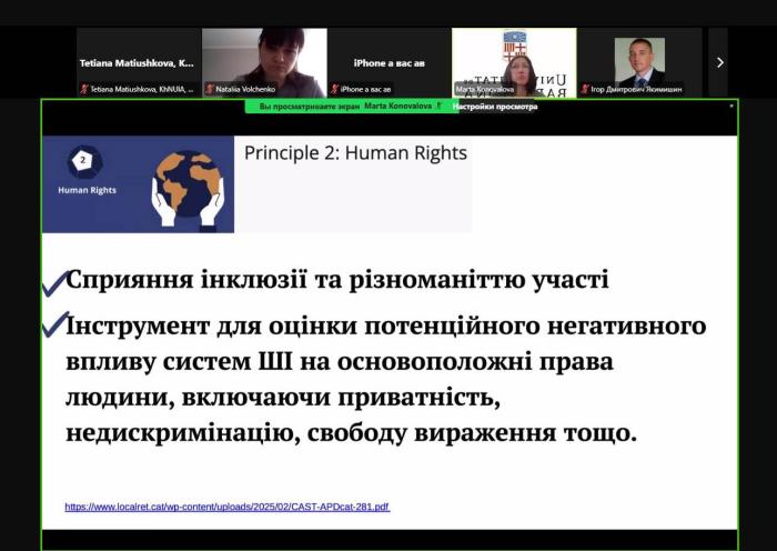 Триває співпраця між ХНУВС та Інститутом досліджень TransJus Університету Барселони (Institut de Recerca TransJus Universidad de Barcelona), у межах якої представники науково-педагогічного складу та здобувачі вищої освіти університету прослухали лекцію на тему: «Реалізація принципів належного врядування в Каталонії».