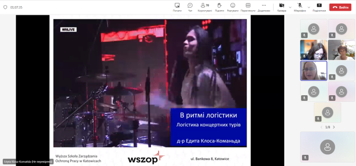 На запрошення Вищої школи управління охороною праці у Катовіцах (Республіка Польща) представники Харківського національного університету внутрішніх справ в усіх містах, де дислокується заклад вищої освіти, взяли участь в онлайн-лекції на тему «В ритмі логістики (концертна логістика)».