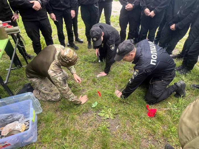 Здобувачі освіти відпрацювали практичні дії щодо ідентифікації вибухонебезпечних предметів, алгоритм дій під час отримання повідомлення про виявлення підозрілого предмета та механізм проведення нетехнічного та технічного обстеження території із дотриманням особистих заходів безпеки.